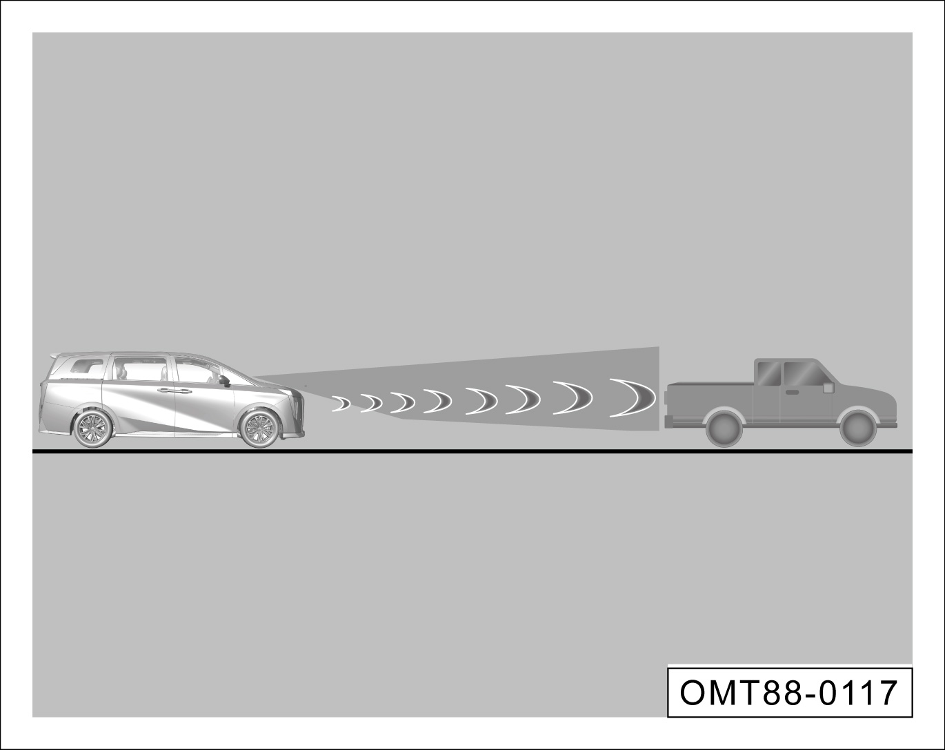 ACC系统在车辆短暂停止或者获得驾驶员的确认(控制按键或者加速踏板)后能够使车辆自动驶出。在这段时间内驾驶员必须保证在车辆的正前方没有障碍物或者其它的交通参与者,如行人/自行车。