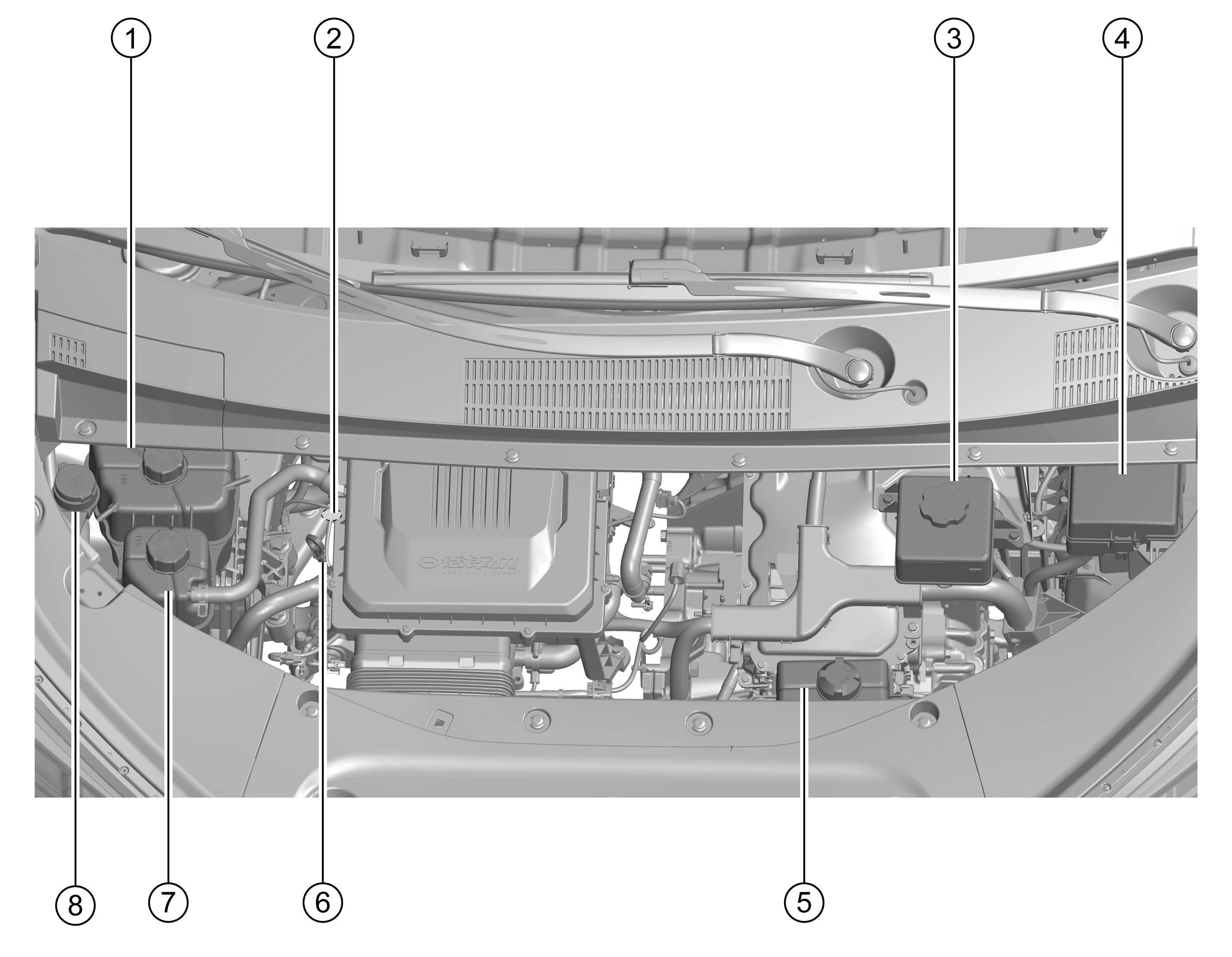 ⑧ 风窗洗涤液储液罐 风窗洗涤液和雨刮器片