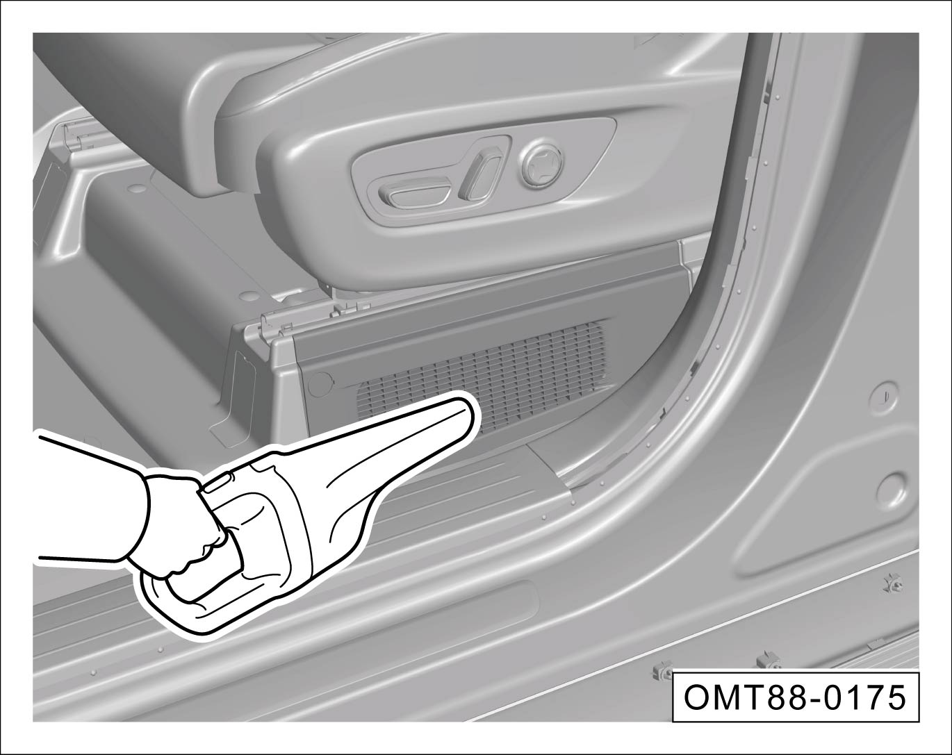 前排座椅两侧下方均设有进气通风口,用于冷却动力电池。如果通风口堵塞,则动力电池的充电/放电可能受限。