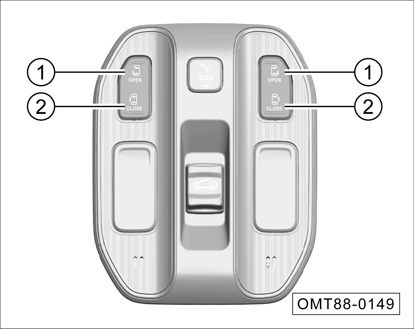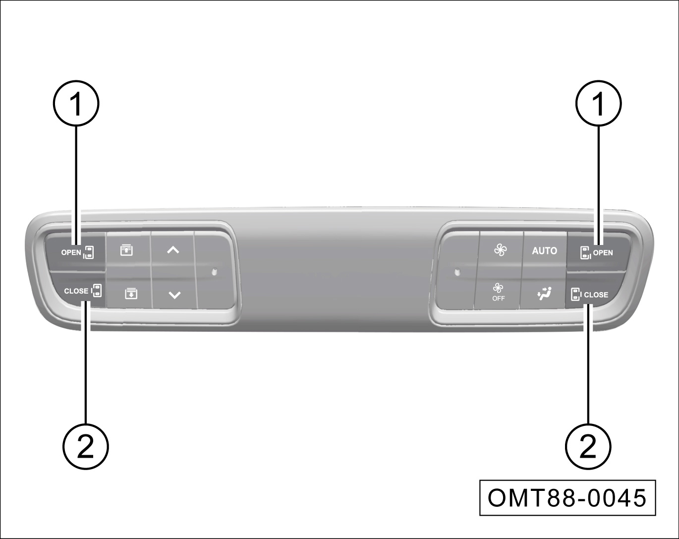 在滑移门全开状态下,按压按键①,电动关闭对应侧滑移门。