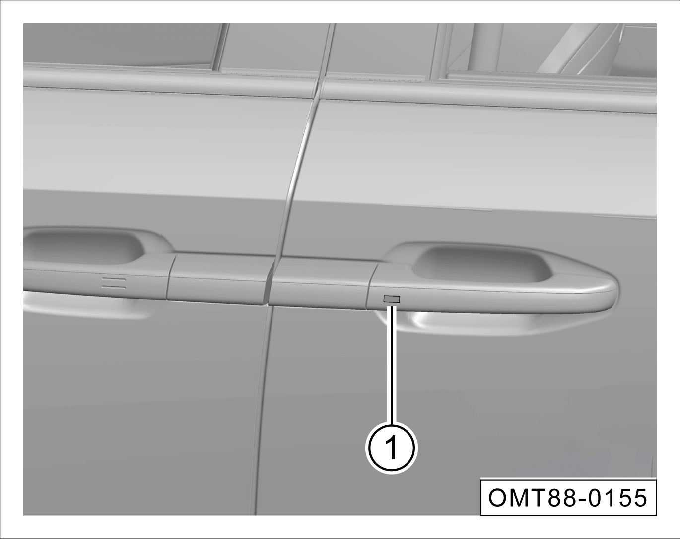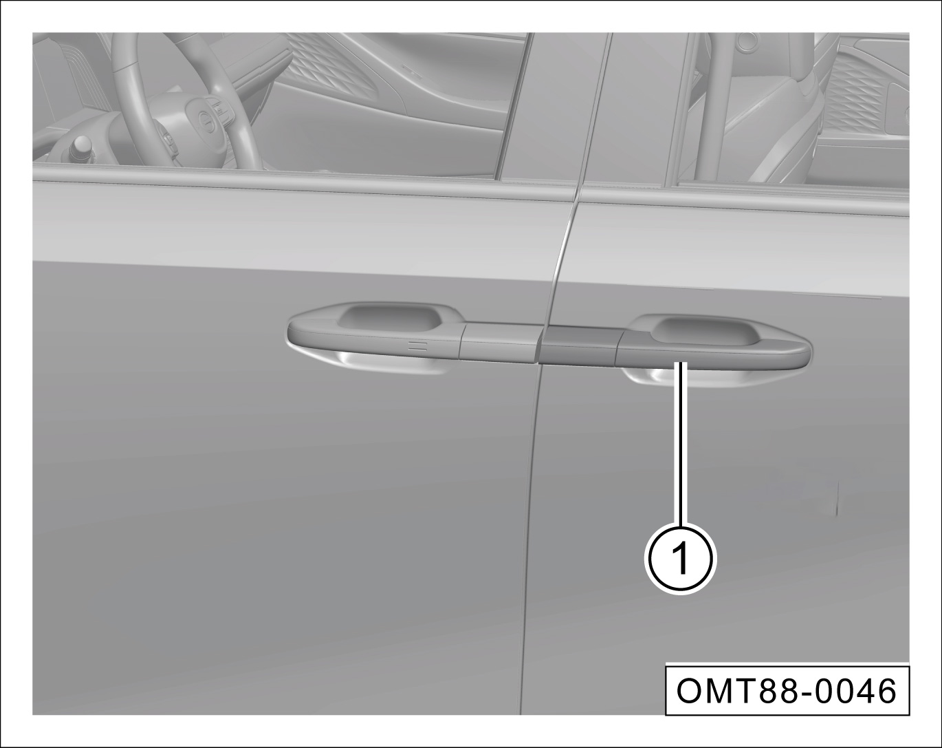 在滑移门全闭状态下,滑移门解锁时,拉动外把手①,电动开启对应侧滑移门。