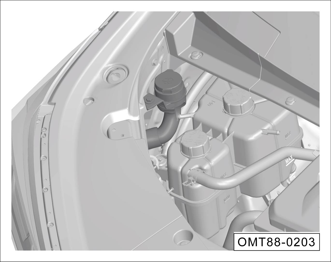 在前机舱内作业时务必格外谨慎。开始作业前务必仔细阅读并遵守相关警告说明。