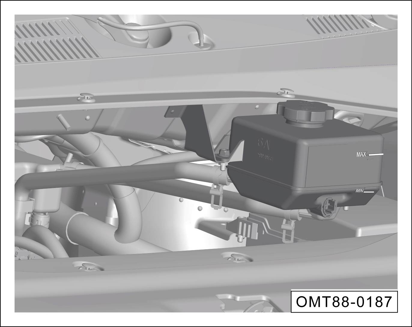 检查制动液液位后,如液位低于下限标记“MIN”,必须添加制动液。