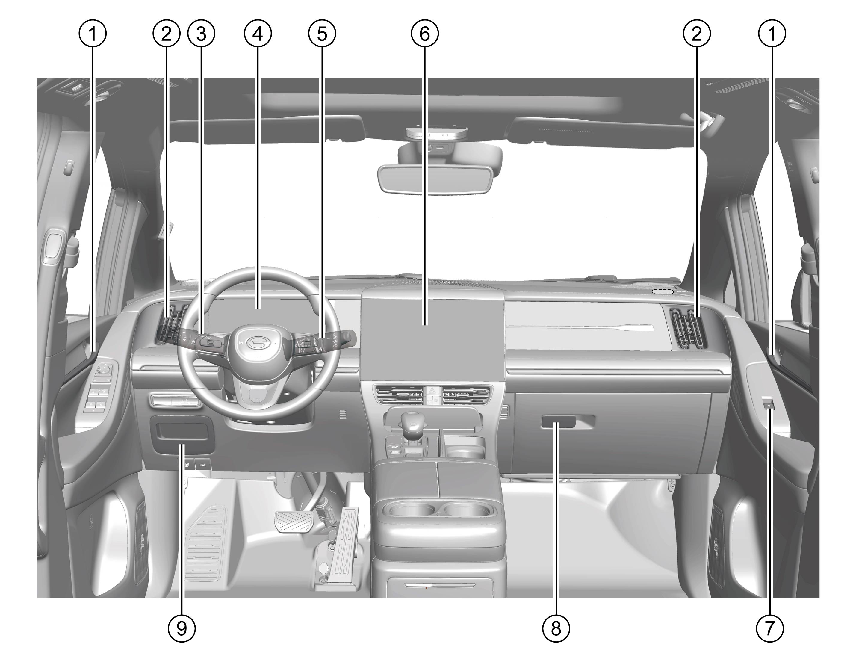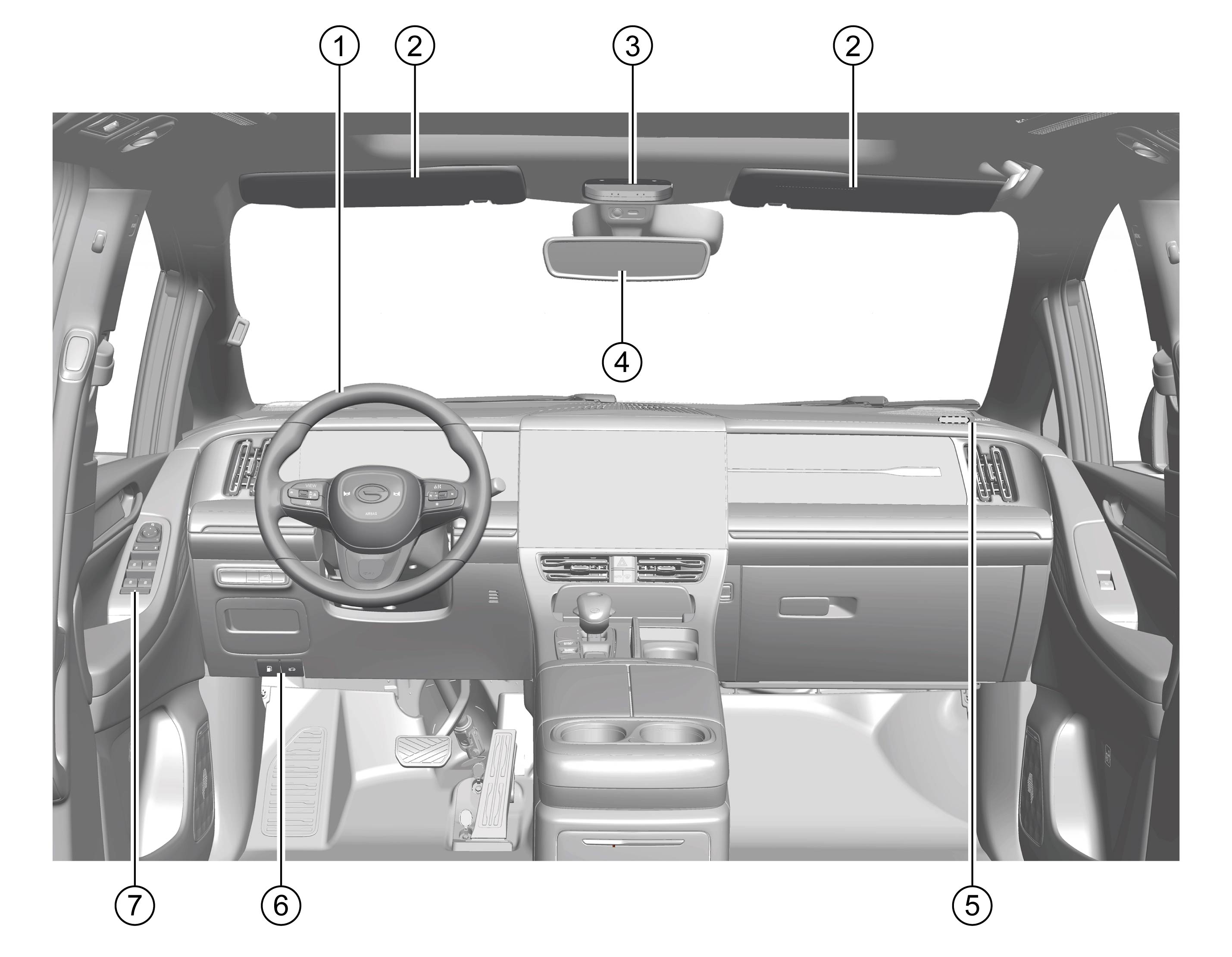 ⑦ 驾驶员侧电动车窗按键 电动车窗