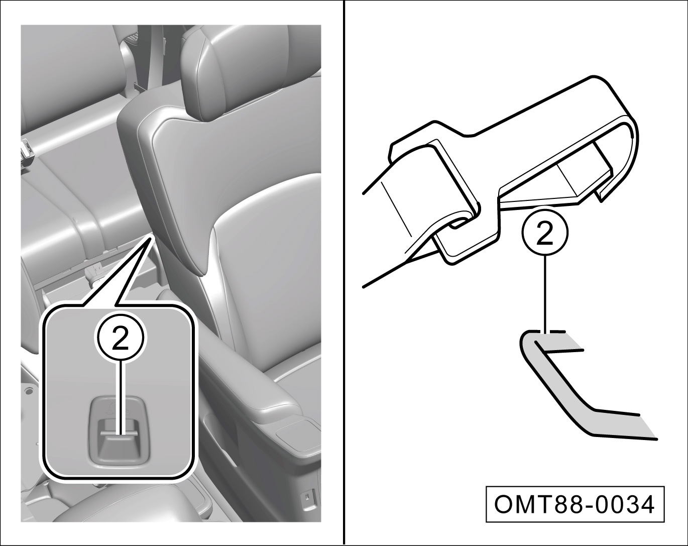 将紧固带穿过靠背顶部,并将紧固带钩勾住上固定点②,确保紧固带未扭曲。
