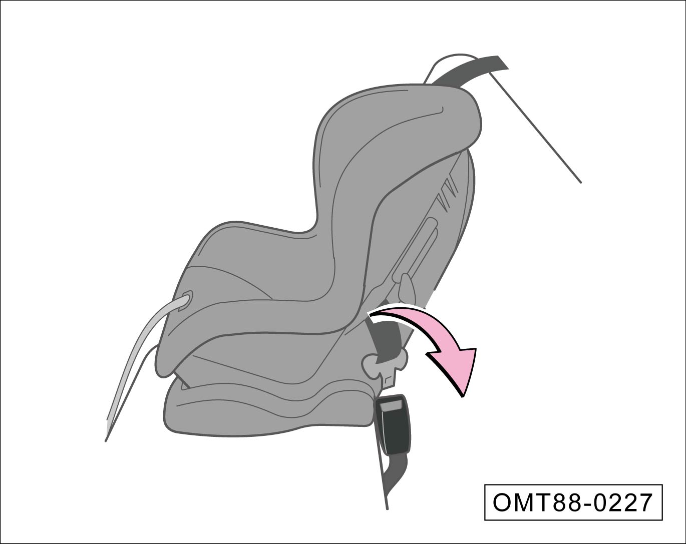 抓住锁扣附近的肩部安全带,向上拉起使腰部安全带不再松弛。此时,用自身重量压在儿童安全座椅上并将其推入车辆座椅。