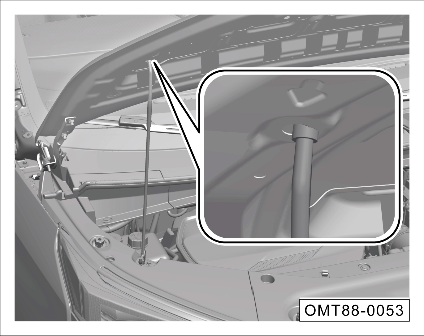 将其高度降到接近翼子板处,稍微用力向下按压前机舱盖前端使其关闭牢固锁定。