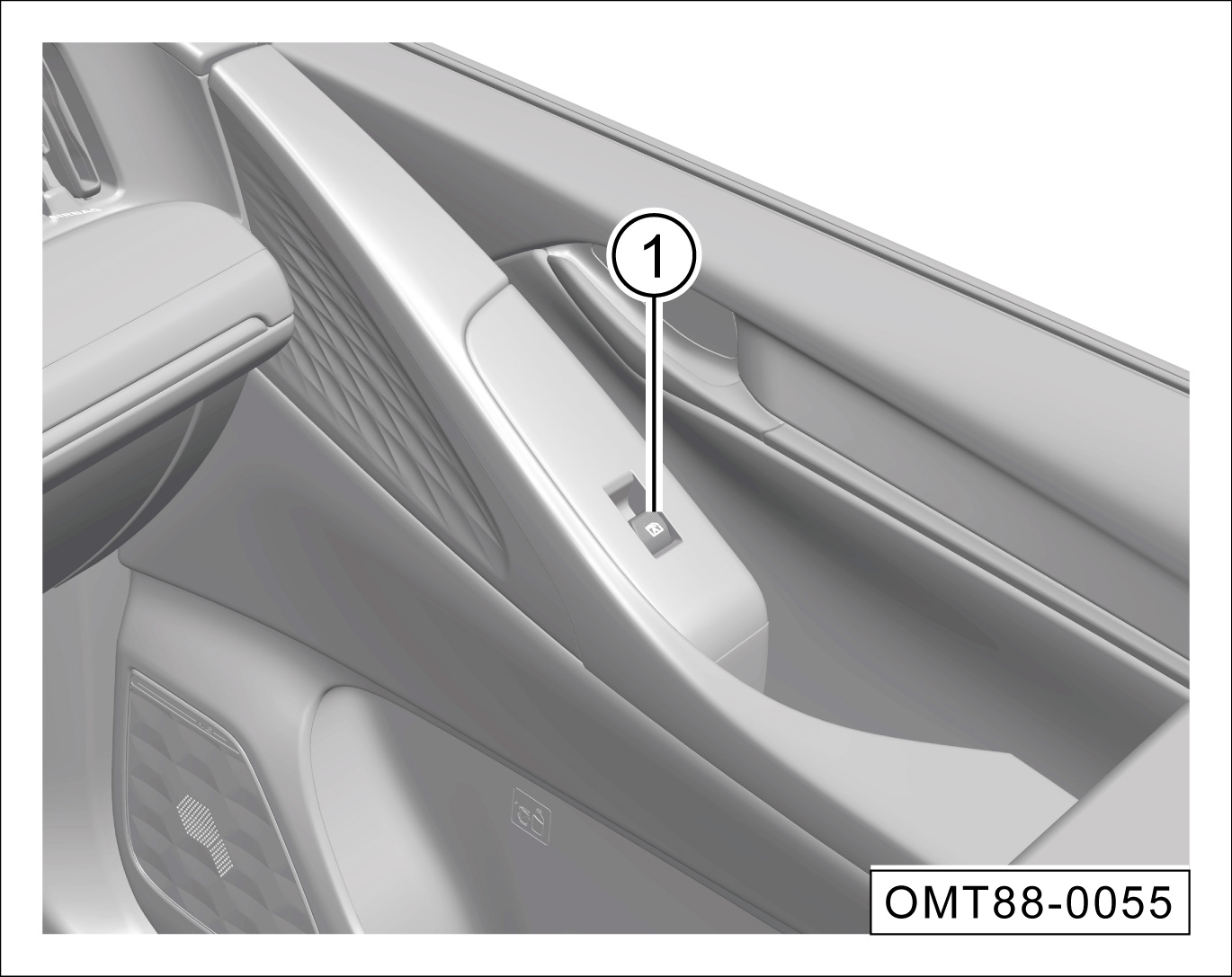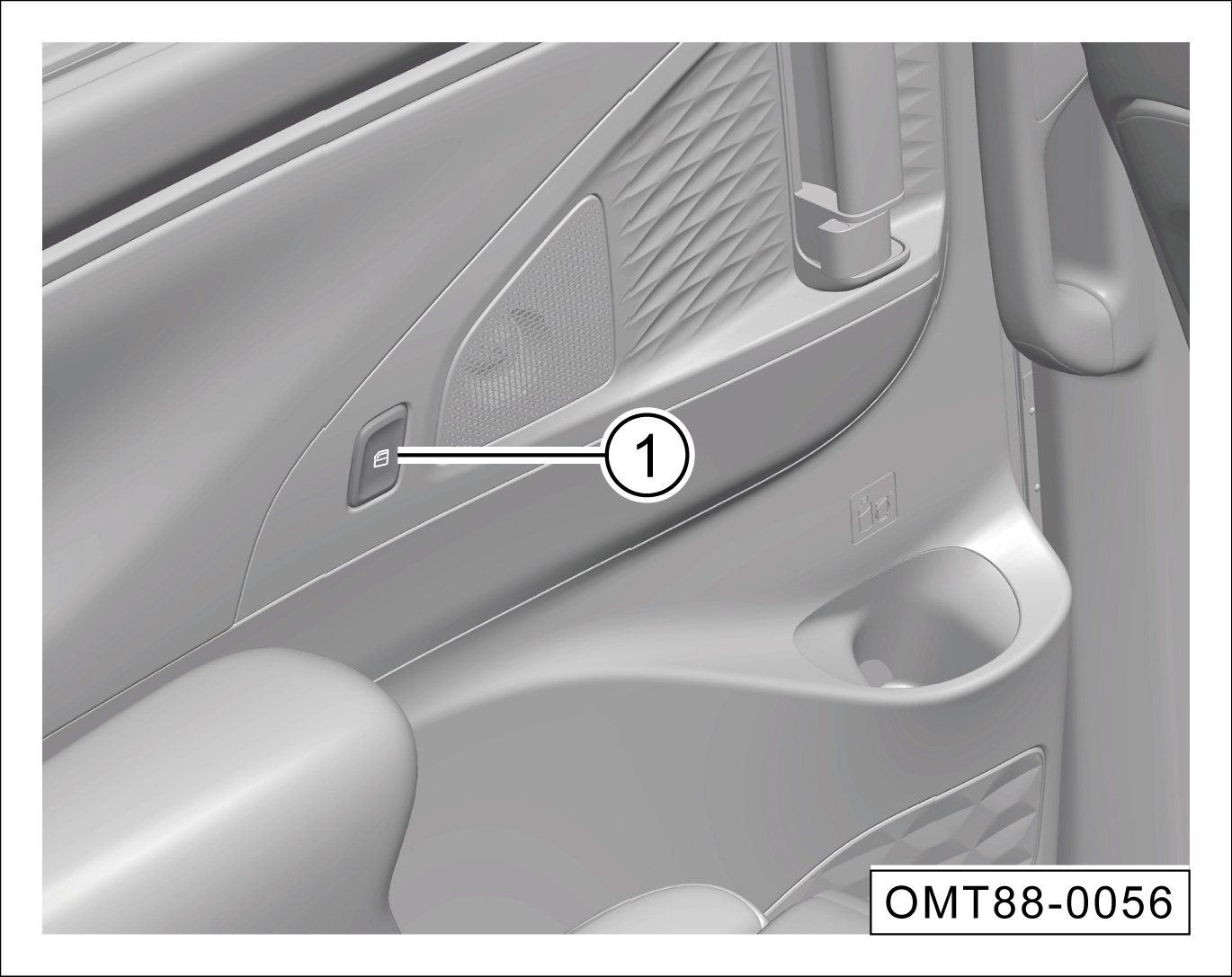 按压按键①的下端到第一个停止位置,车窗将向下打开,直到松开按键或者车窗下降至最低位置。