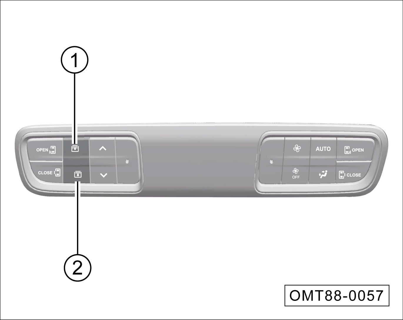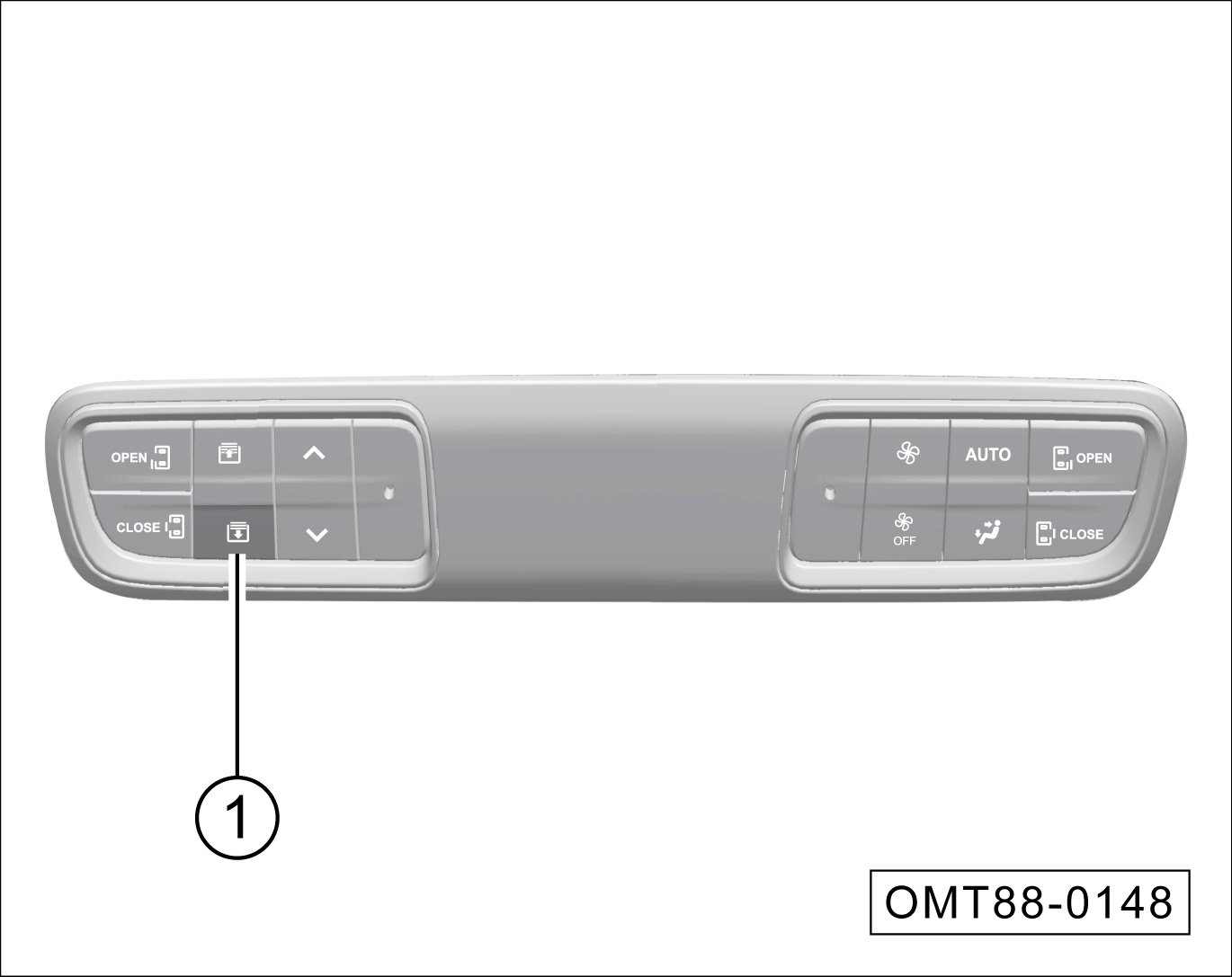 短促地向后推动天窗开关①,天窗开启一小段距离后即停止运动。