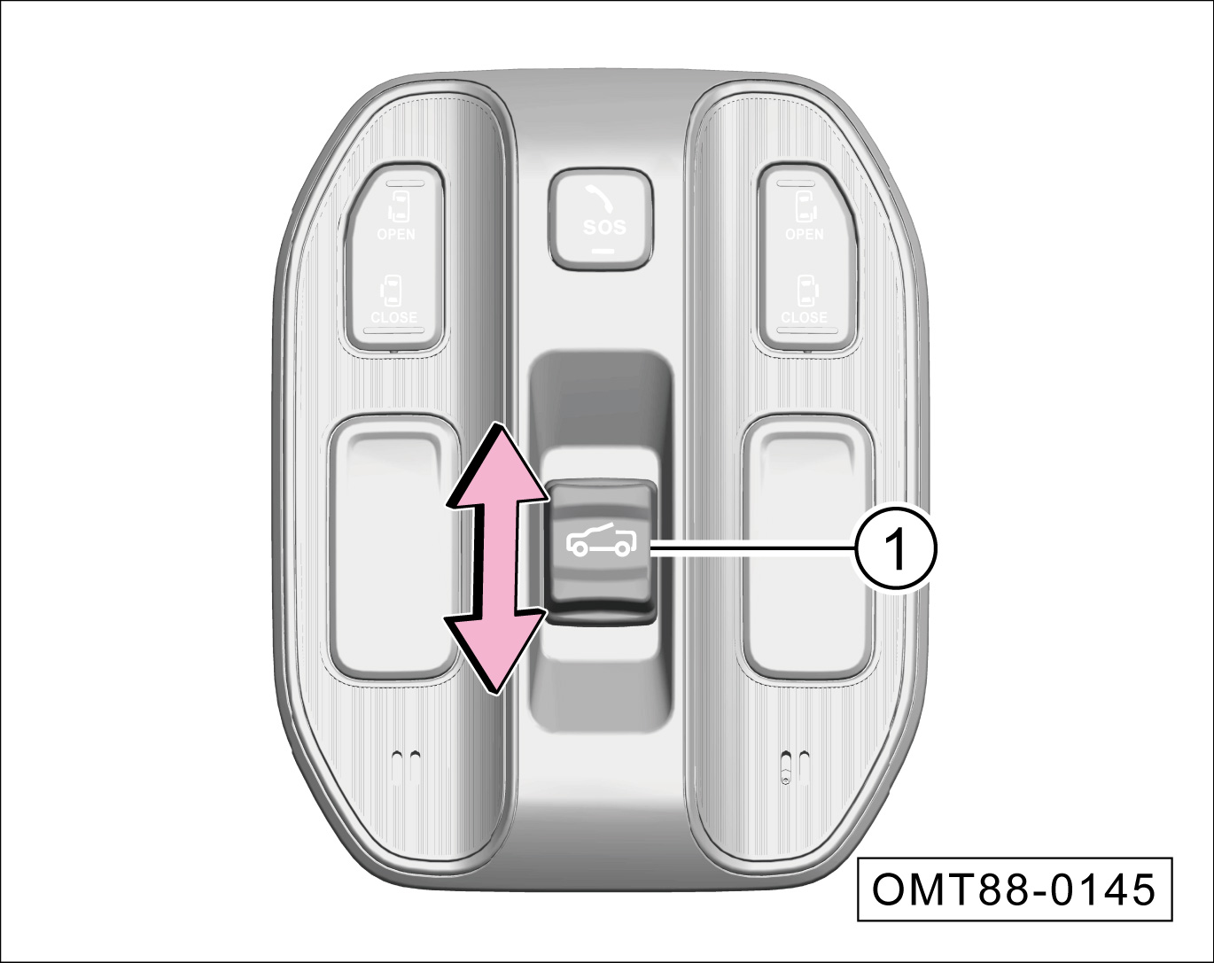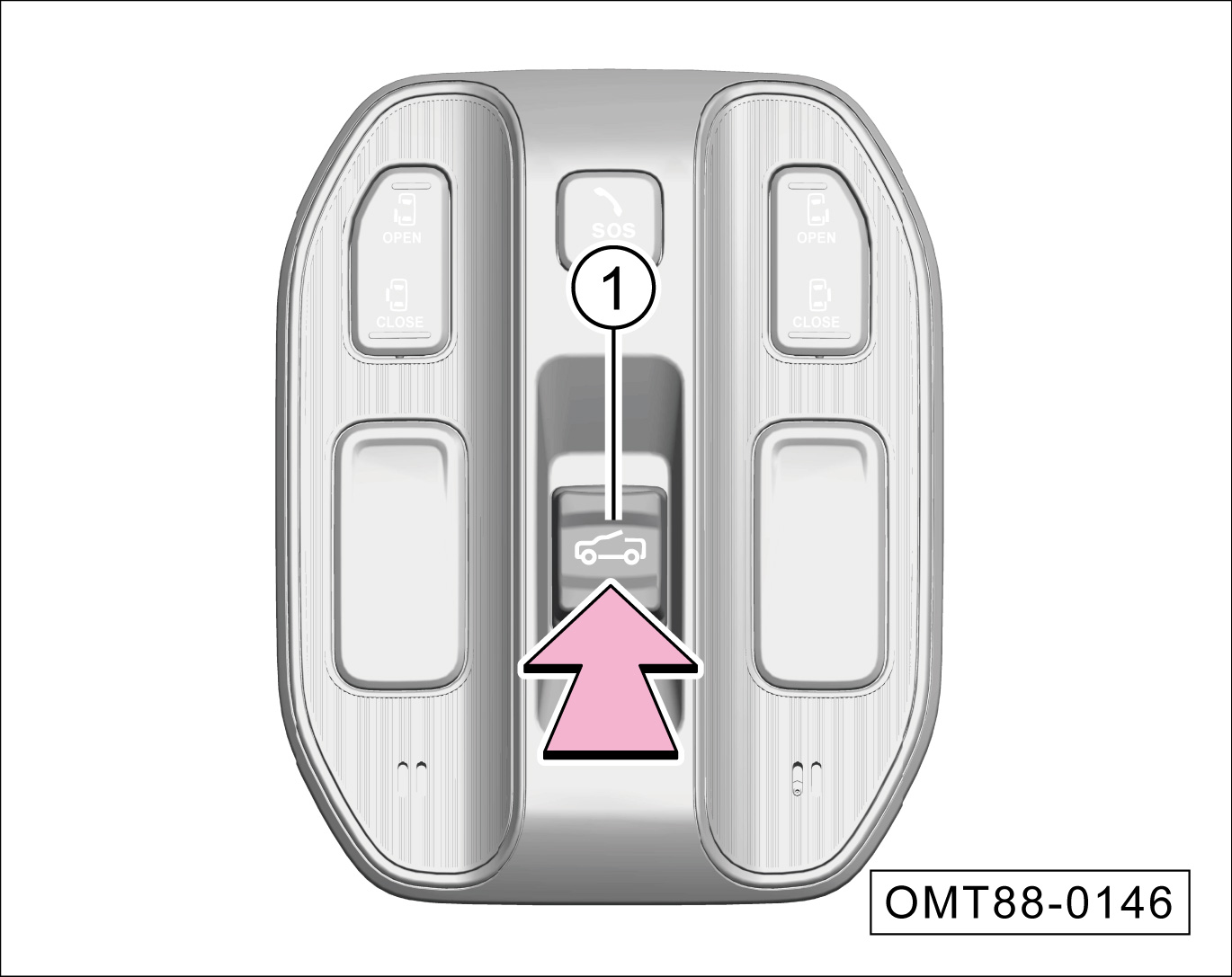 向后推动天窗开关①并保持一小段时间,天窗自动运动到全开状态。