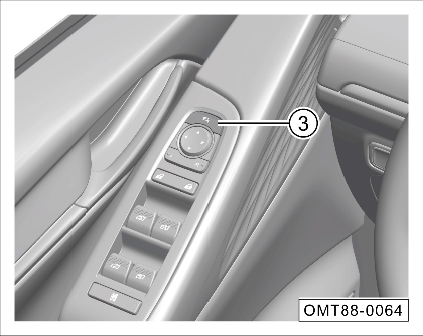 按选择键①的“L”端或“R”端,选择左侧或右侧外后视镜。