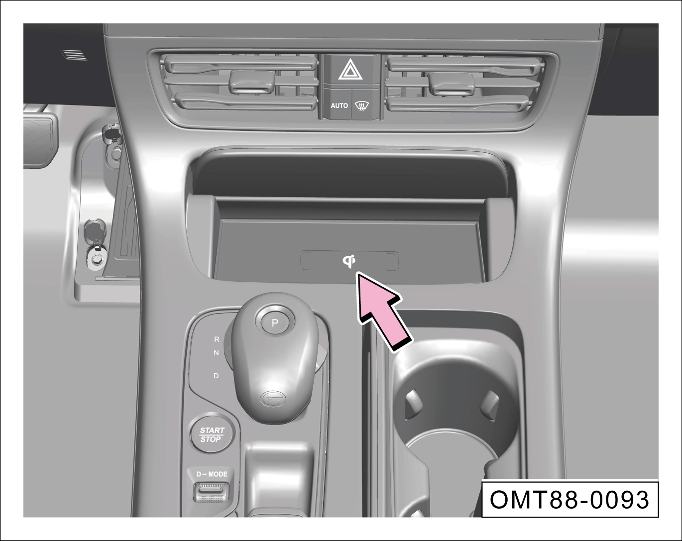 无线充电有效区域位于换挡杆前方的储物槽内,充电时请把手机充电线圈对准“Qi”标识,以保证手机的正常充电。