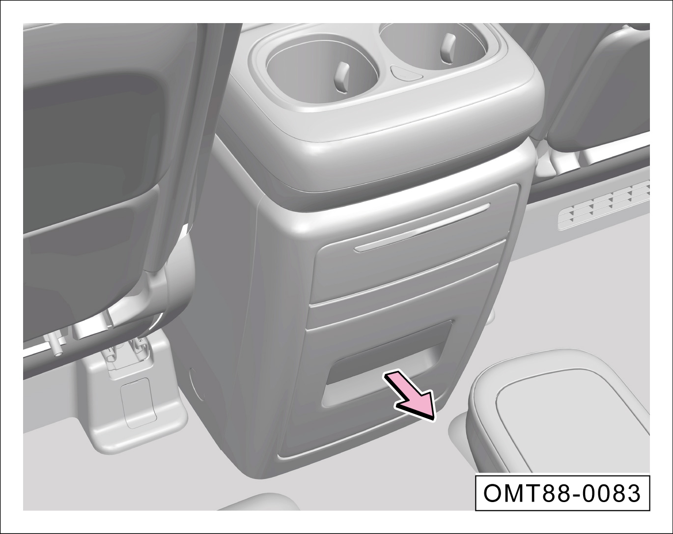 推回中央扶手箱后储物格并听到“咔嗒”扣合声,可关闭中央扶手箱后储物格。