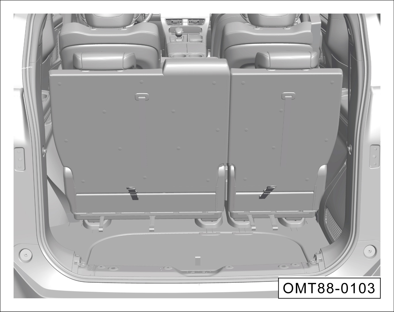 翻转第三排左侧座椅后,可见三角警告牌、随车工具。