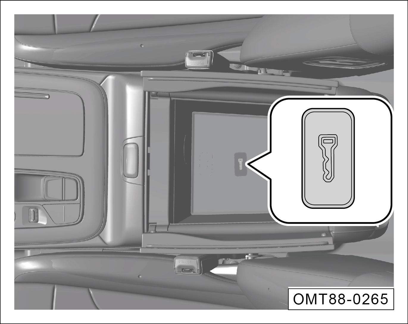 若由于智能遥控钥匙电池电量低,组合仪表显示屏提示“未检测到钥匙”时,可以把智能遥控钥匙水平放在前排扶手箱底部钥匙标记处,然后按启动开关切换到“ACC”或“ON”挡位,或踩下制动踏板,启动开关背光灯变为绿色后,按下启动开关,启动发动机。