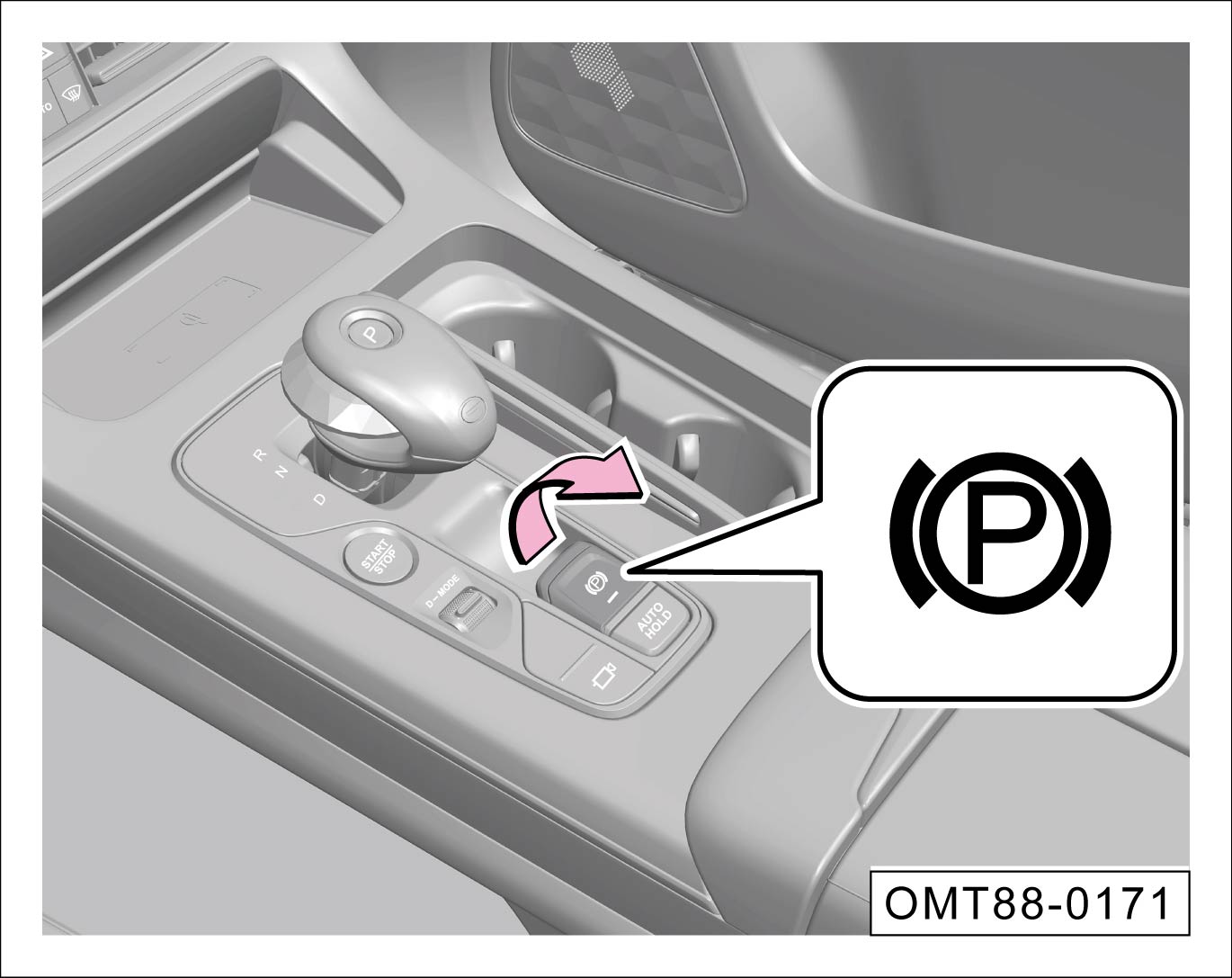 踩下制动踏板时,按压自动驻车按键。