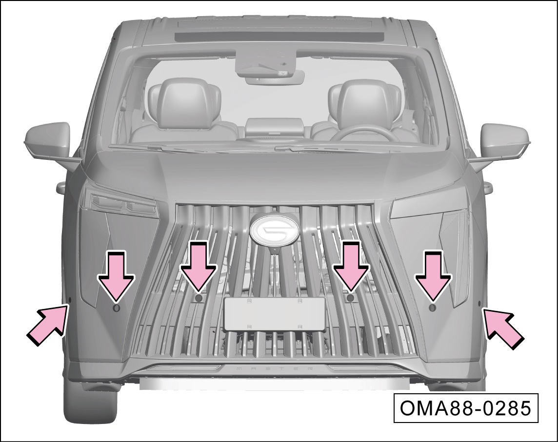 前部超声波雷达传感器安装在前保险杠罩上。