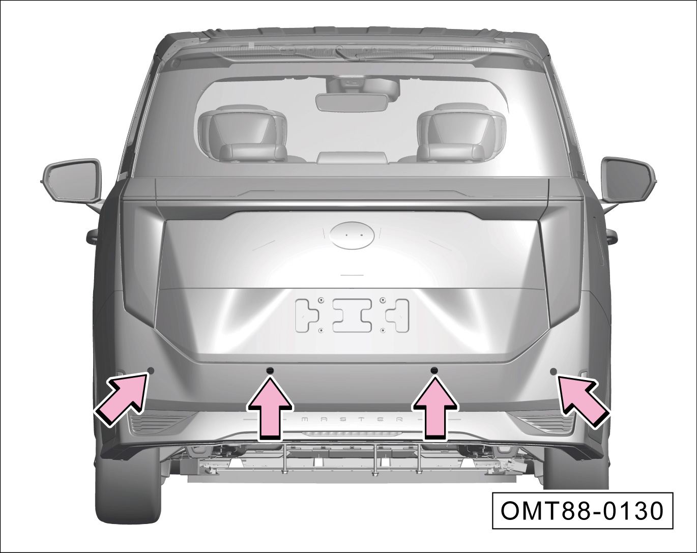 后部超声波雷达传感器安装在后保险杠罩上。