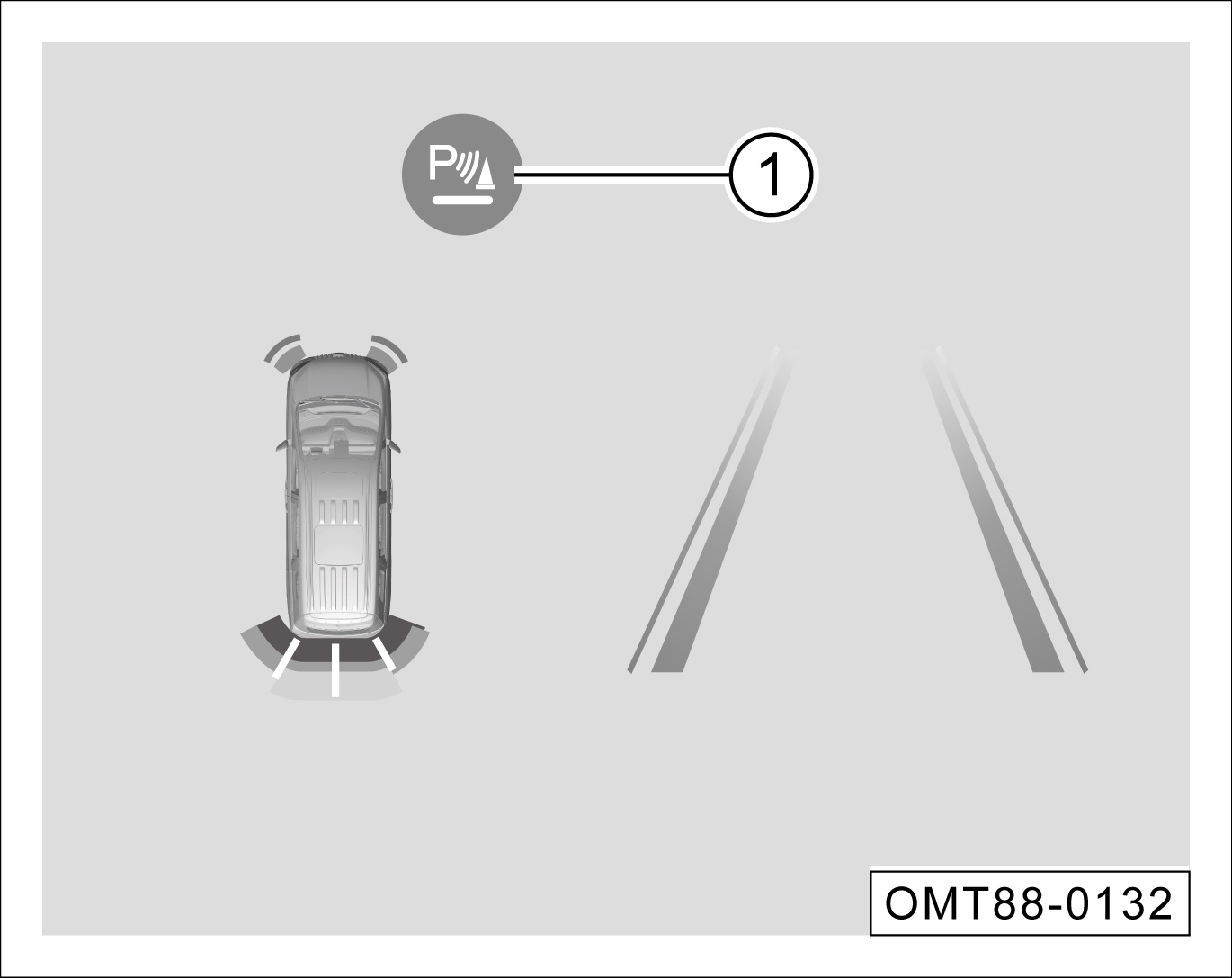软按键①可手动关闭报警音,再按则重新开启。重新启动车辆后倒车雷达系统报警音默认开启。