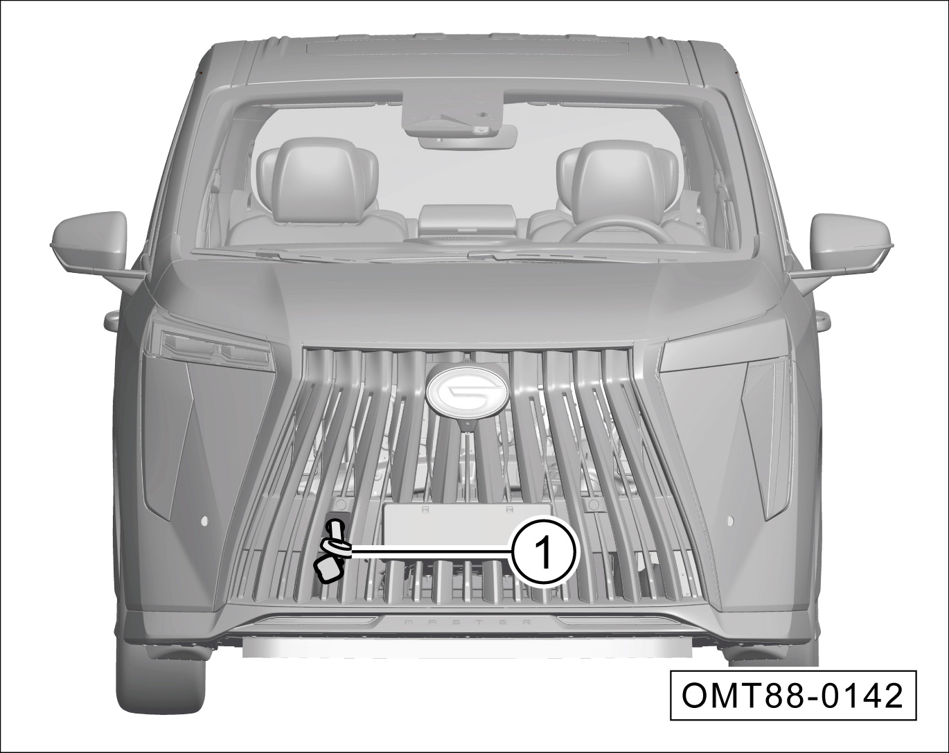 将牵引钩①顺时针旋进螺纹孔并拧紧牵引钩。