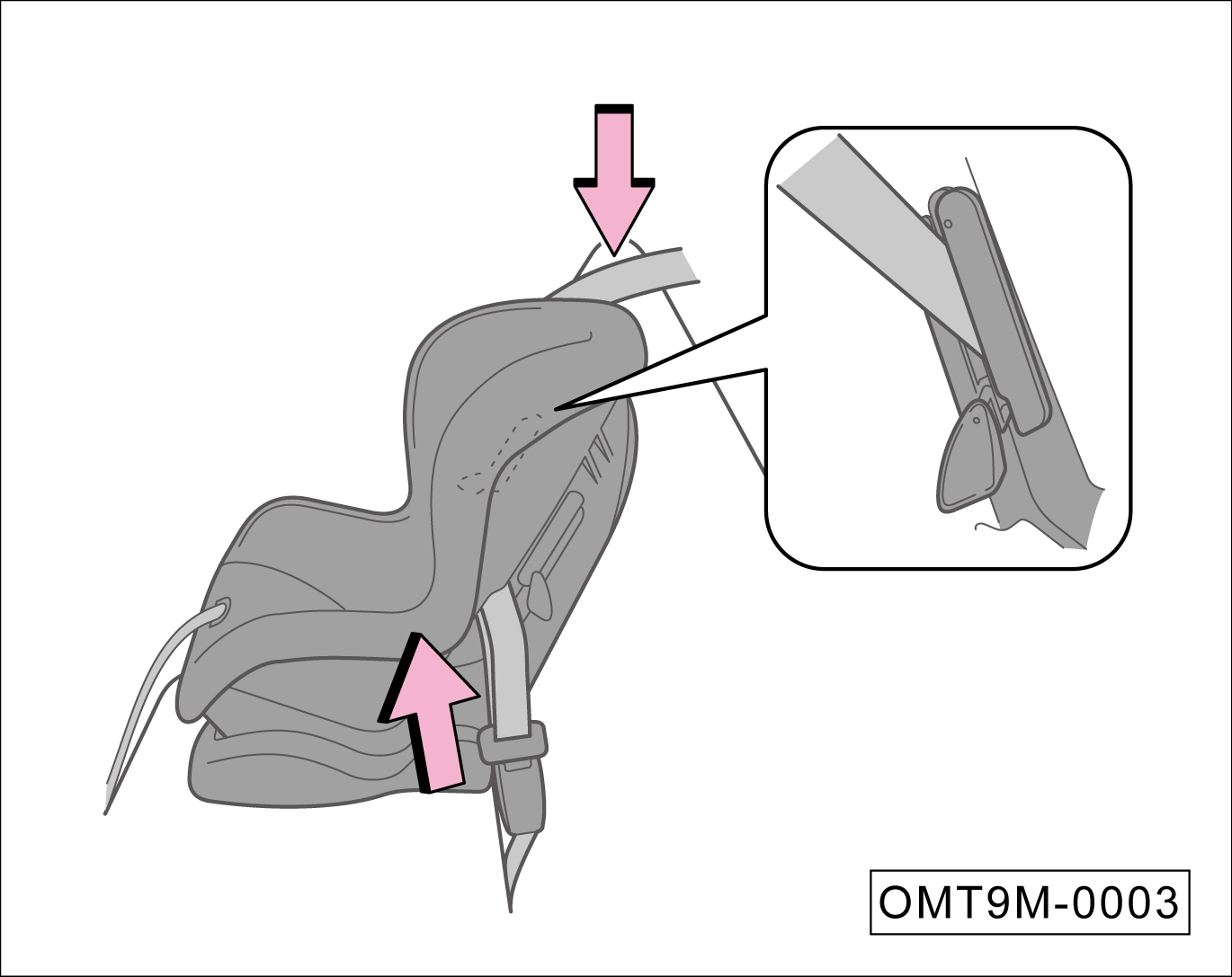 抓住锁扣附近的肩部安全带,向上拉起使腰部安全带不再松弛。此时,用自身重量压在儿童安全座椅上并将其推入车辆座椅。