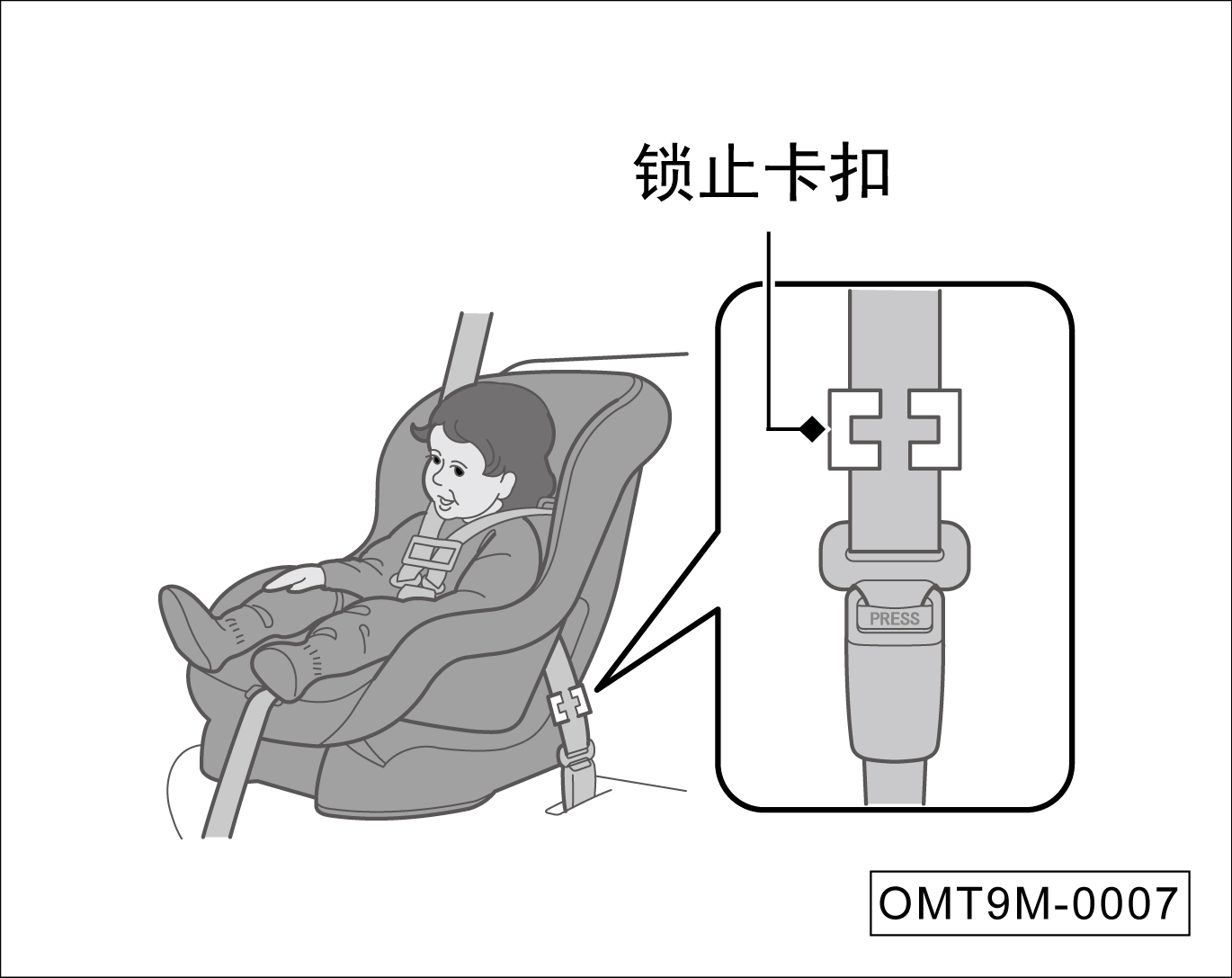 如果儿童安全座椅没有固定安全带的装置,请在安全带上安装一个锁止卡扣。