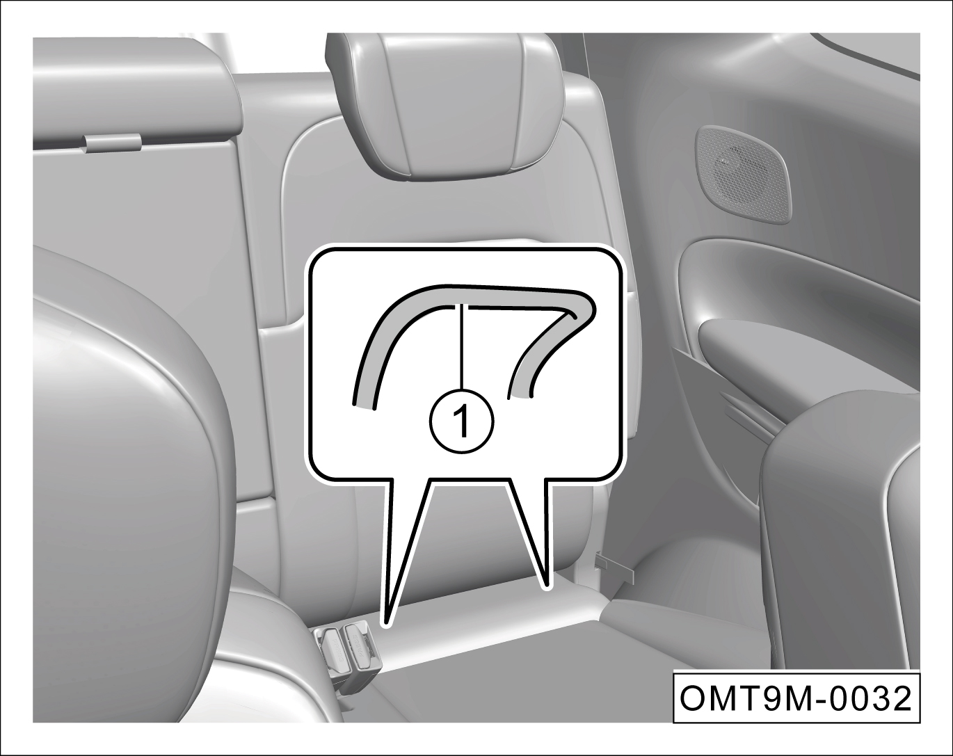 将紧固带穿过靠背顶部,并将紧固带钩勾住上固定点②,确保紧固带未扭曲。