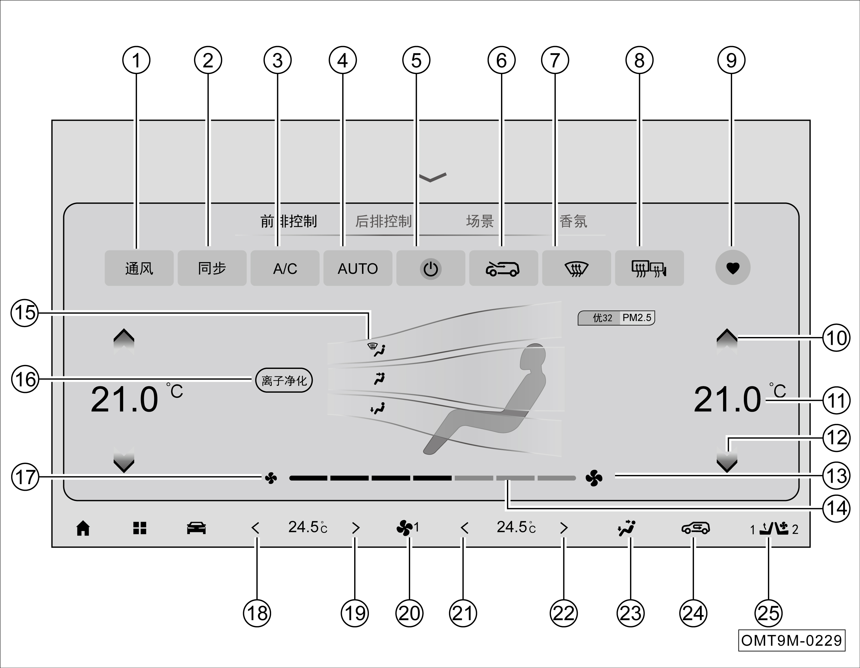 前排空调控制界面说明