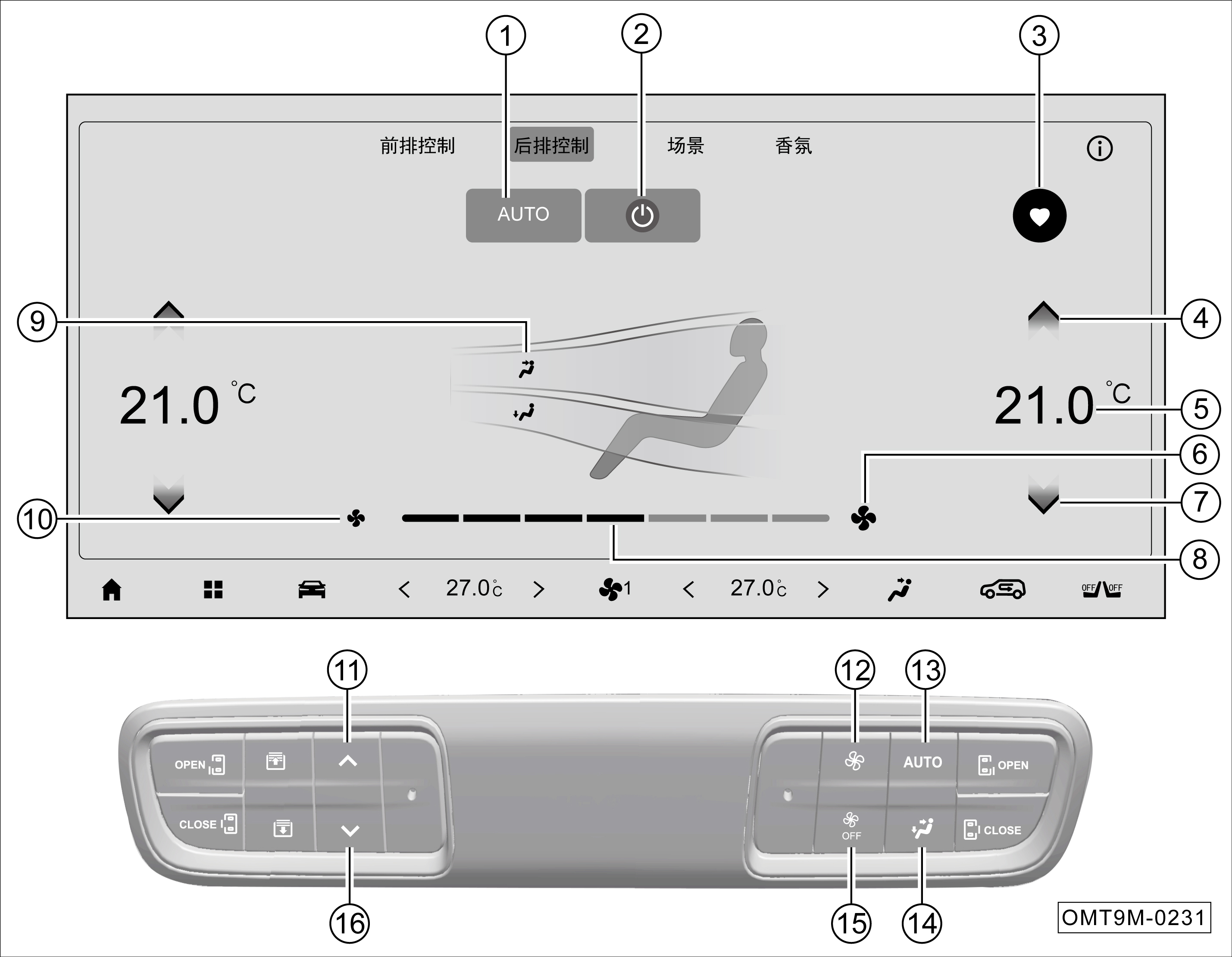 后排空调控制界面说明