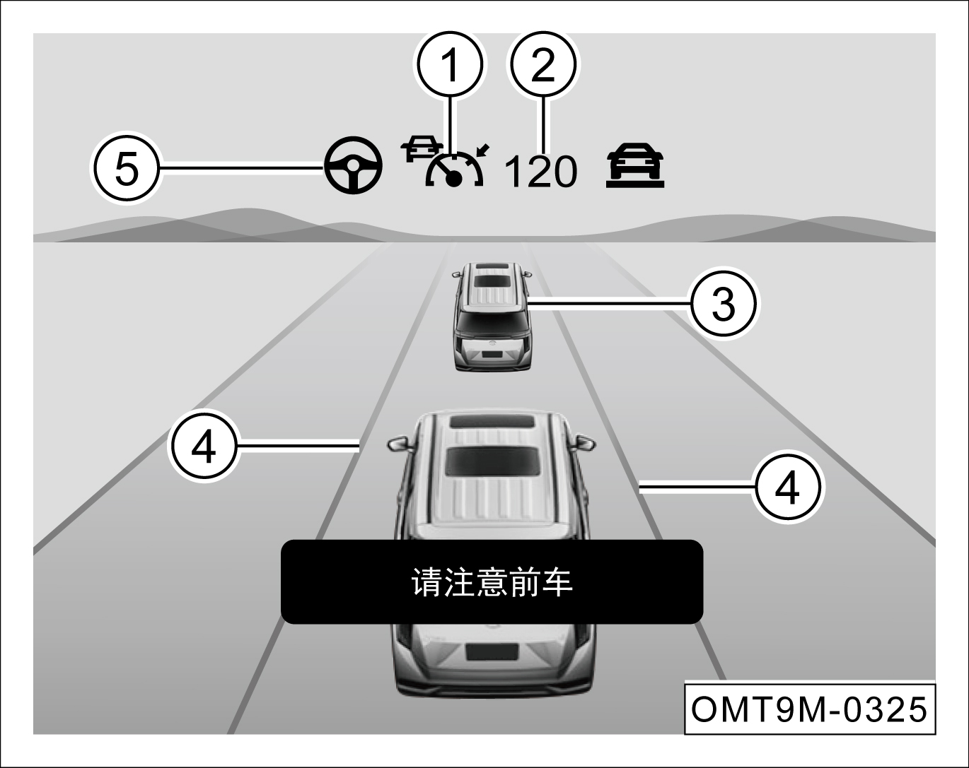 ICA仅能使用有限的行车制动系统的制动能力,当系统需要驾驶员介入制动时,组合仪表显示报警信息并伴随报警音。