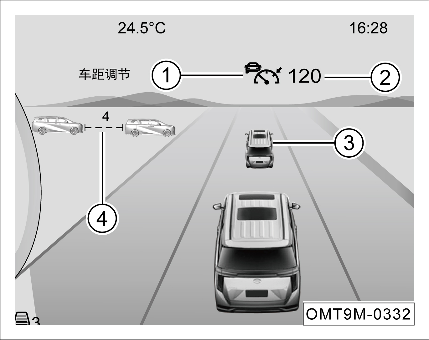 ④ 设定的与前方车辆的巡航时距。