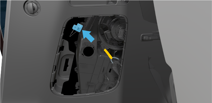 如果无法电动开启充电口盖,紧急情况下,可使用后备箱左侧的黄色应急拉索解锁充电口盖。