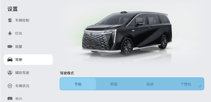 - 运动:该驾驶模式下,能量回收强度与舒适驾驶模式相同。