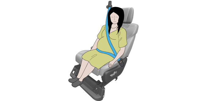 安全带同样适用于孕妇,在整个妊娠期间孕妇都应佩戴安全带,安全带需均匀平贴着通过胸部且安全带横跨部分应尽可能低地平贴在髋部前面。
