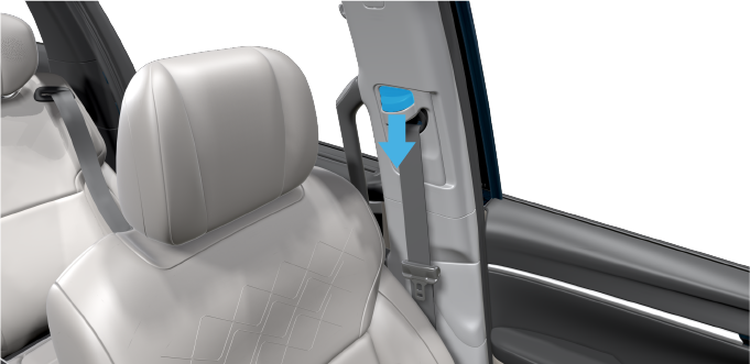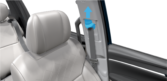 前排安全带可上下调节,请根据实际驾乘人员的身高,适当调节安全带。