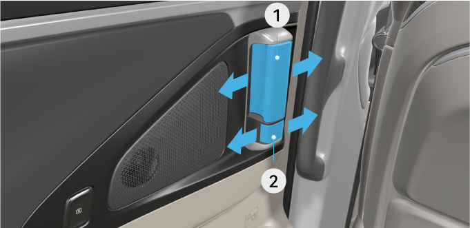 儿童锁开启时,即使滑移门锁栓在解锁状态,滑移门内拉手也无法开启滑移门,此时应从车外开启滑移门。切勿过于用力拉动滑移门内拉手,避免损坏。