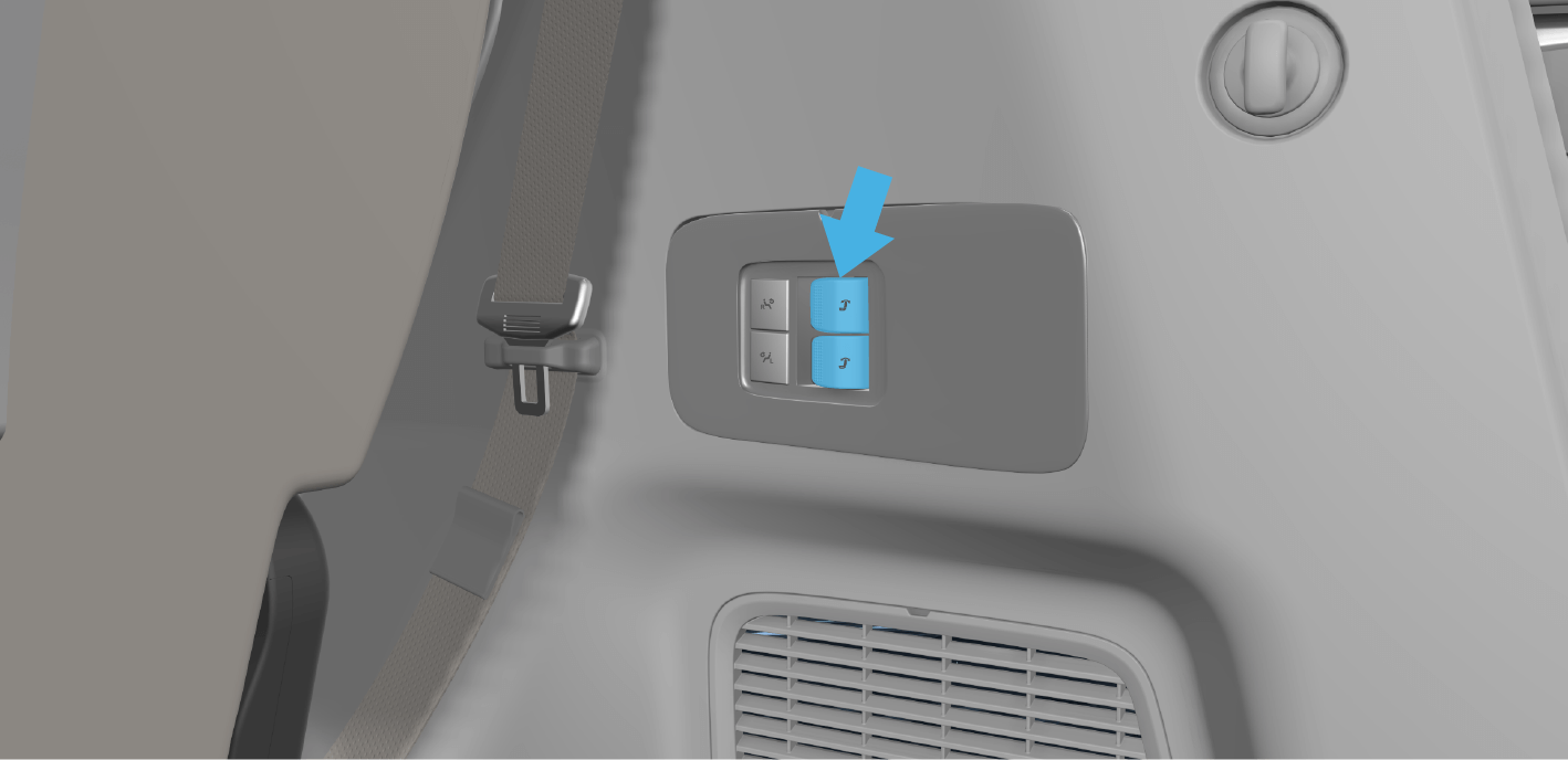 选择三排对应的座椅,点击对应可调节部位上的圆点,展开调节按键,可根据需要调节座椅靠背角度。