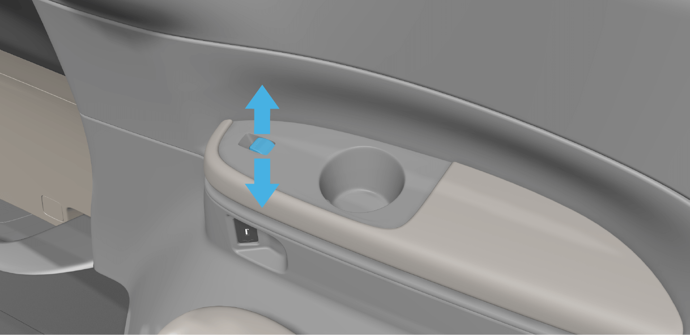 打开:向下拉动扶手上部的拉手,打开后下压中央扶手,确保扶手打开到位。