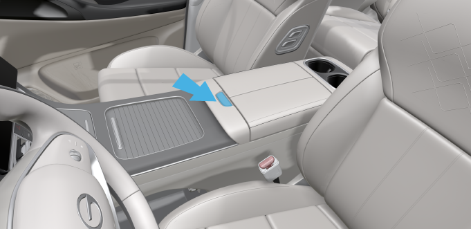 关闭:按下左右两侧扶手箱盖板,直至其接合到位。