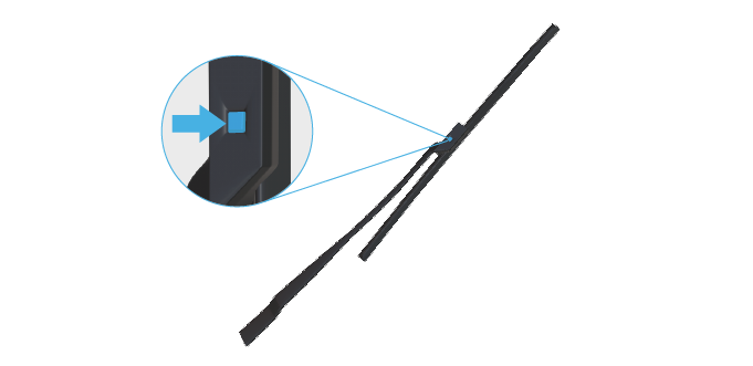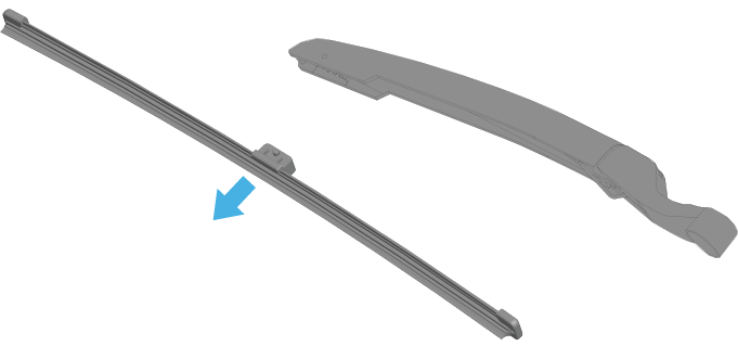 按下锁片的同时,从雨刮臂上方滑出雨刮片。