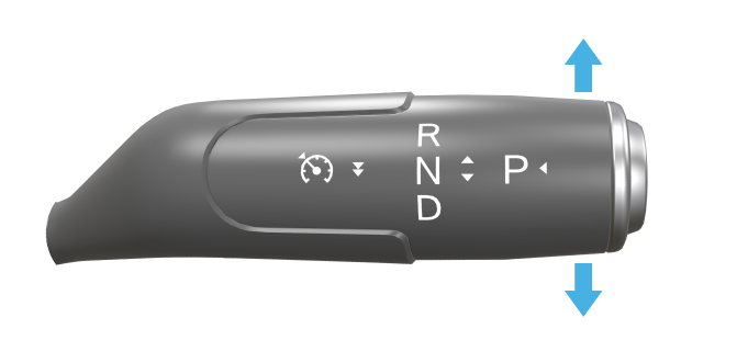 车辆启动后,踩下制动踏板,将换挡控制拨杆向上或向下拨动切换挡位,同时仪表显示屏显示目标挡位。