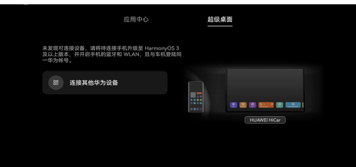 若您的中控屏未登录华为账号,或者中控屏与手机登录为不同的华为账号,您可以通过扫码方式连接华为手机与中控屏,开启超级桌面: