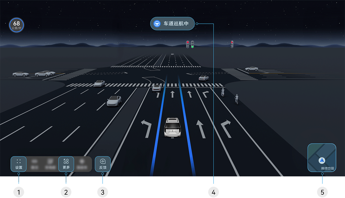 为了增加驾驶员对车辆意图的理解,系统会在车辆进行减速、刹停、变道等行为时,在仪表屏上通过 3D 画面元素和文字提示来向驾驶员传达车辆的 ADS 意图。