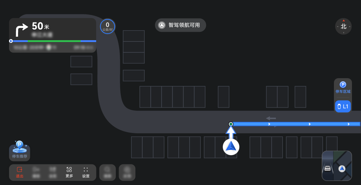 在进出园区或地下停车场(含在园区口、闸机附近行驶)等场景时,车位到车位可能会降级到 LCC 或完全退出,驾驶员应充分目视检查周围环境和车机提示,必要时及时干预或接管,确保安全驾驶。