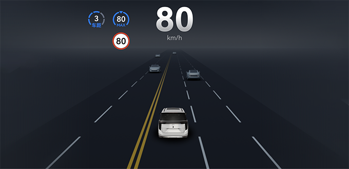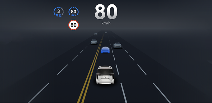 系统检测到车辆、行人、骑行人等障碍物,或遇到弯道、雪地路况、雨天、路面积水等危险场景时,系统会控制车辆降低车速。在雨天等能见度较差场景,系统还会根据雨刮的挡位与道路类型限制目标车速,驾驶员可以手动调节目标车速。