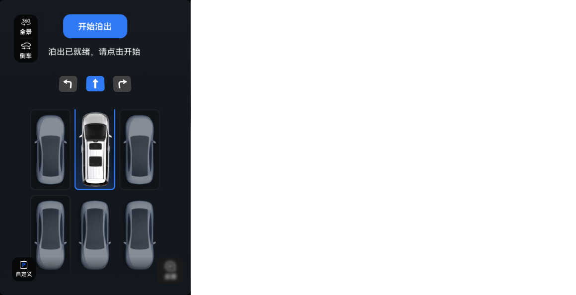 驾驶员选择泊出方向后,踩住制动踏板同时点触“开始泊出”,根据仪表屏提示松开制动踏板和方向盘。
