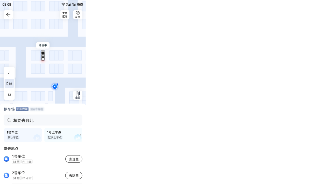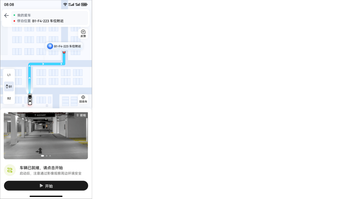 点触“开始”,车辆将启动并驶出停车位,直至行驶至召唤点。