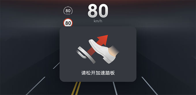 UAP 激活时,仪表屏上会向驾驶员提示“请松开加速踏板”,并伴有“请抬脚”的语音播报。