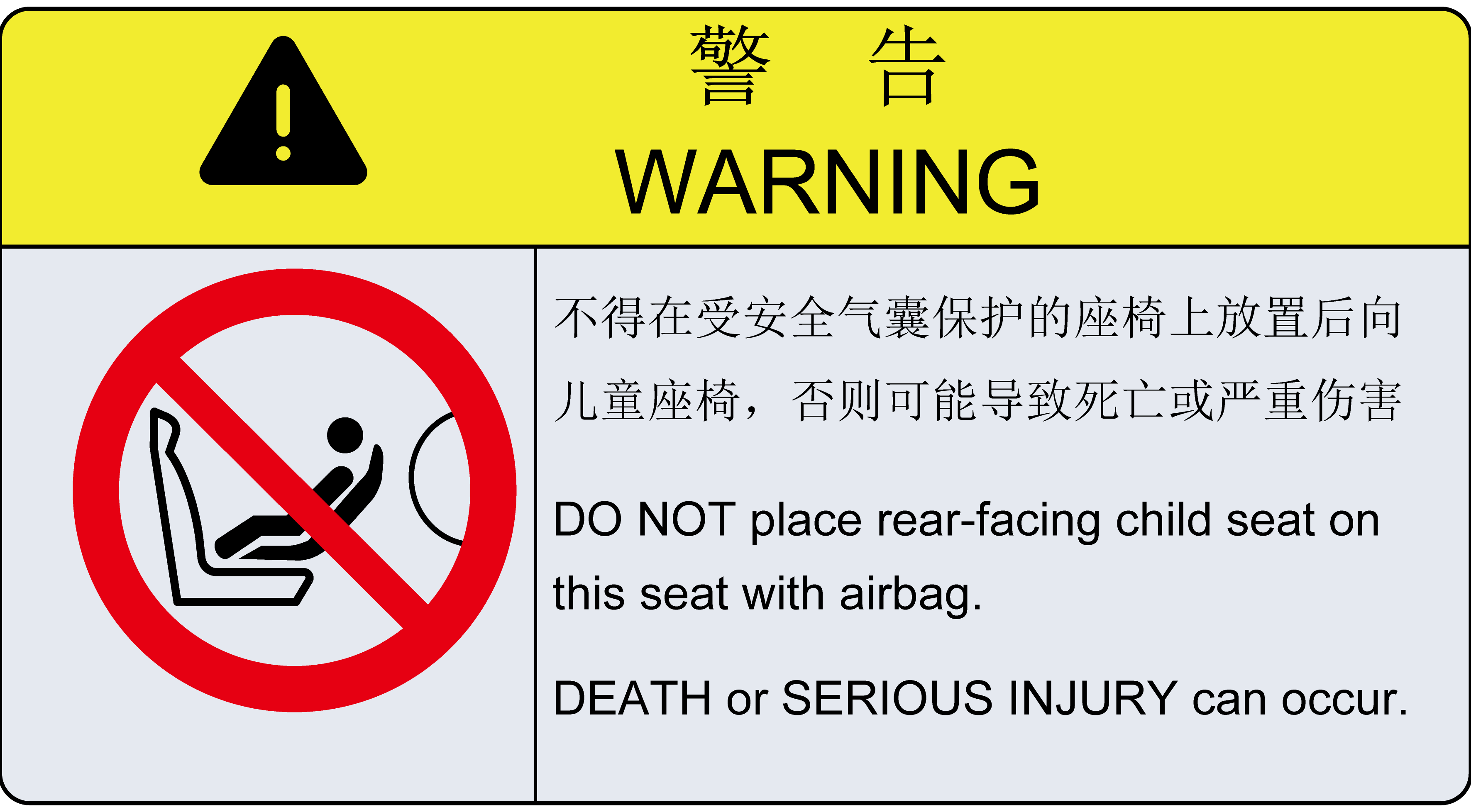 不得在受正面安全气囊保护的座位上使用后向儿童安全座椅!