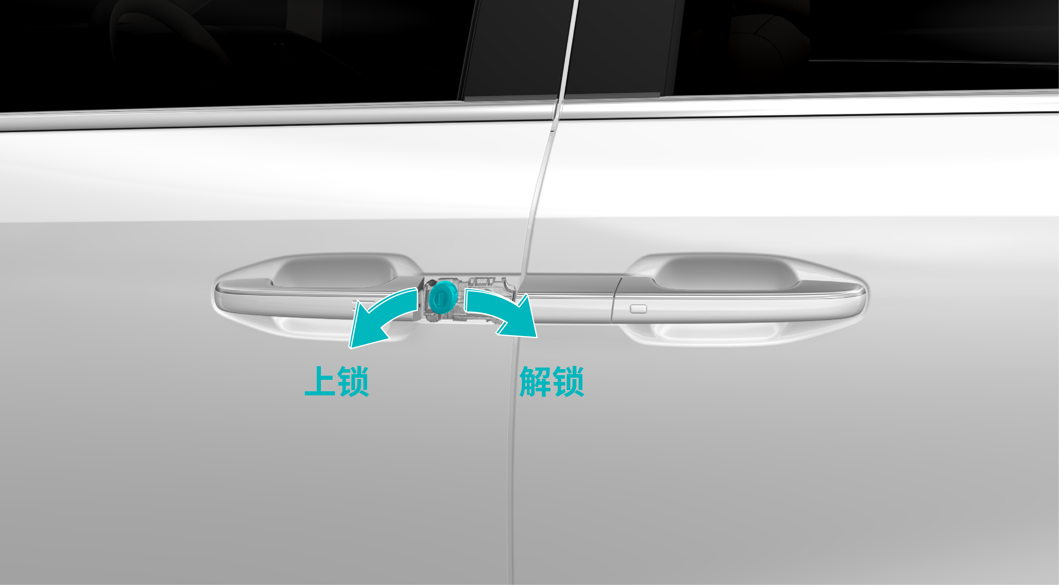 低压蓄电池亏电且整车处于断电状态下,使⽤应急机械钥匙只能解锁或闭锁驾驶员侧车门,无法解锁或闭锁 所有车门。